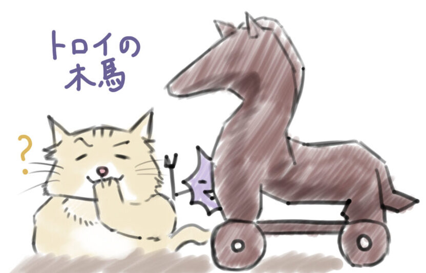 トロイの木馬とは~30秒で解説~ ・一見安全そうに見えるソフトウェアやファイルに偽装して侵入するマルウ…
